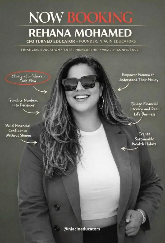 Hi, I’m Rehana Sewoatsri. I’m a financial educator and speaker who spent 16 years watching brilliant people feel stupid around money—not because they lacked intelligence, but because financial education wasn’t designed for how they actually think, live, or build.